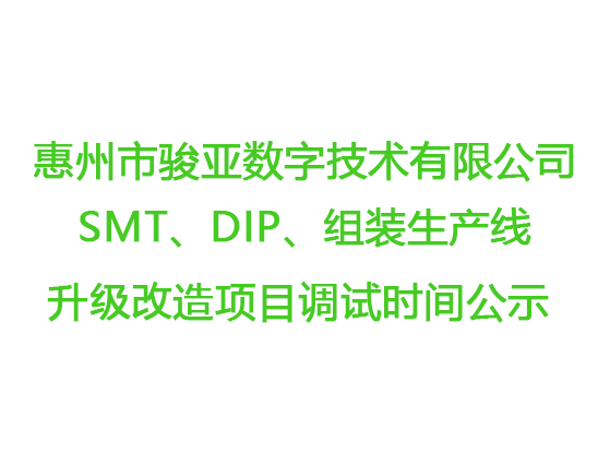 惠州市駿亞數(shù)字技術有限公司SMT、DIP、組裝生產(chǎn)線升級改造項目調(diào)試時間公示